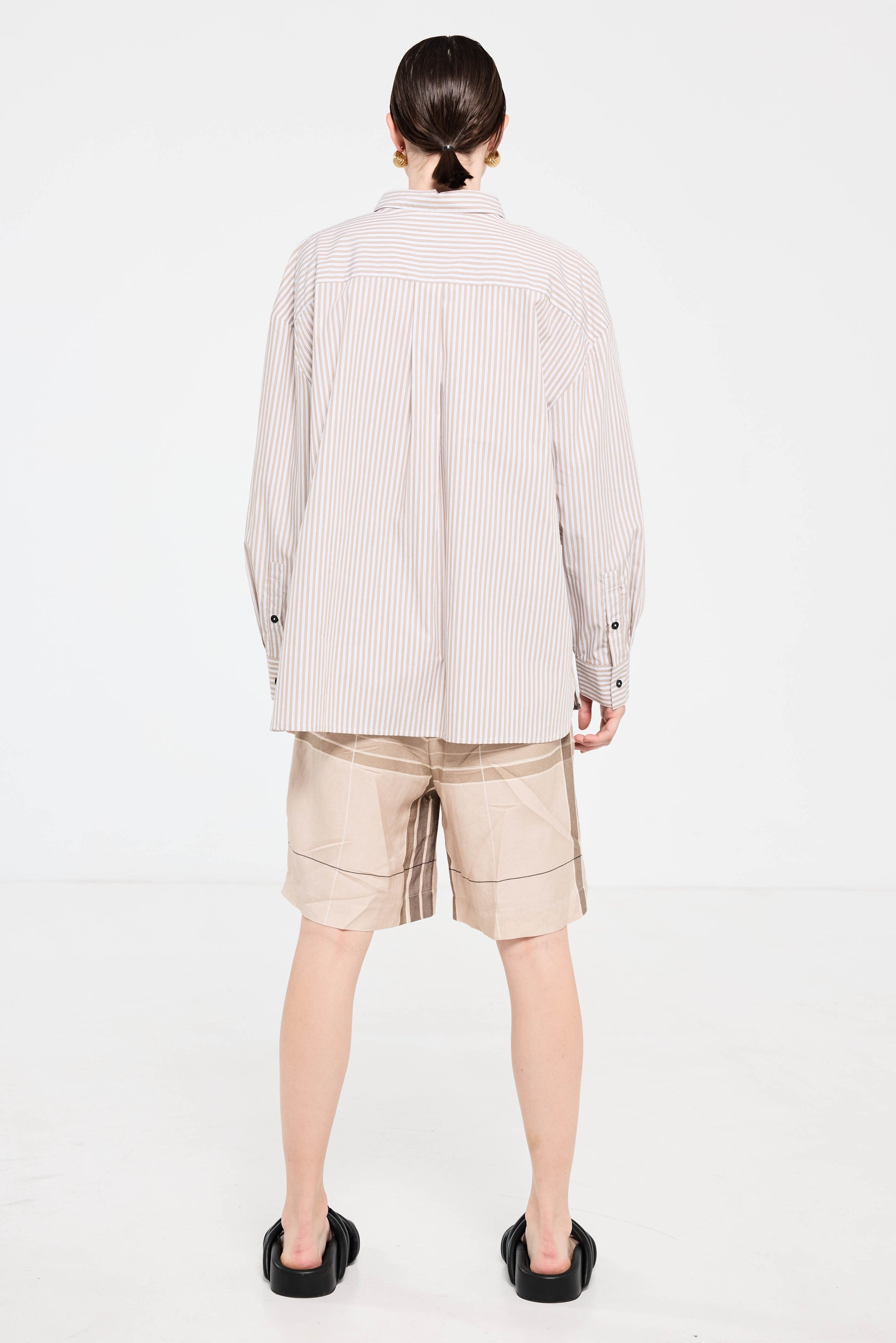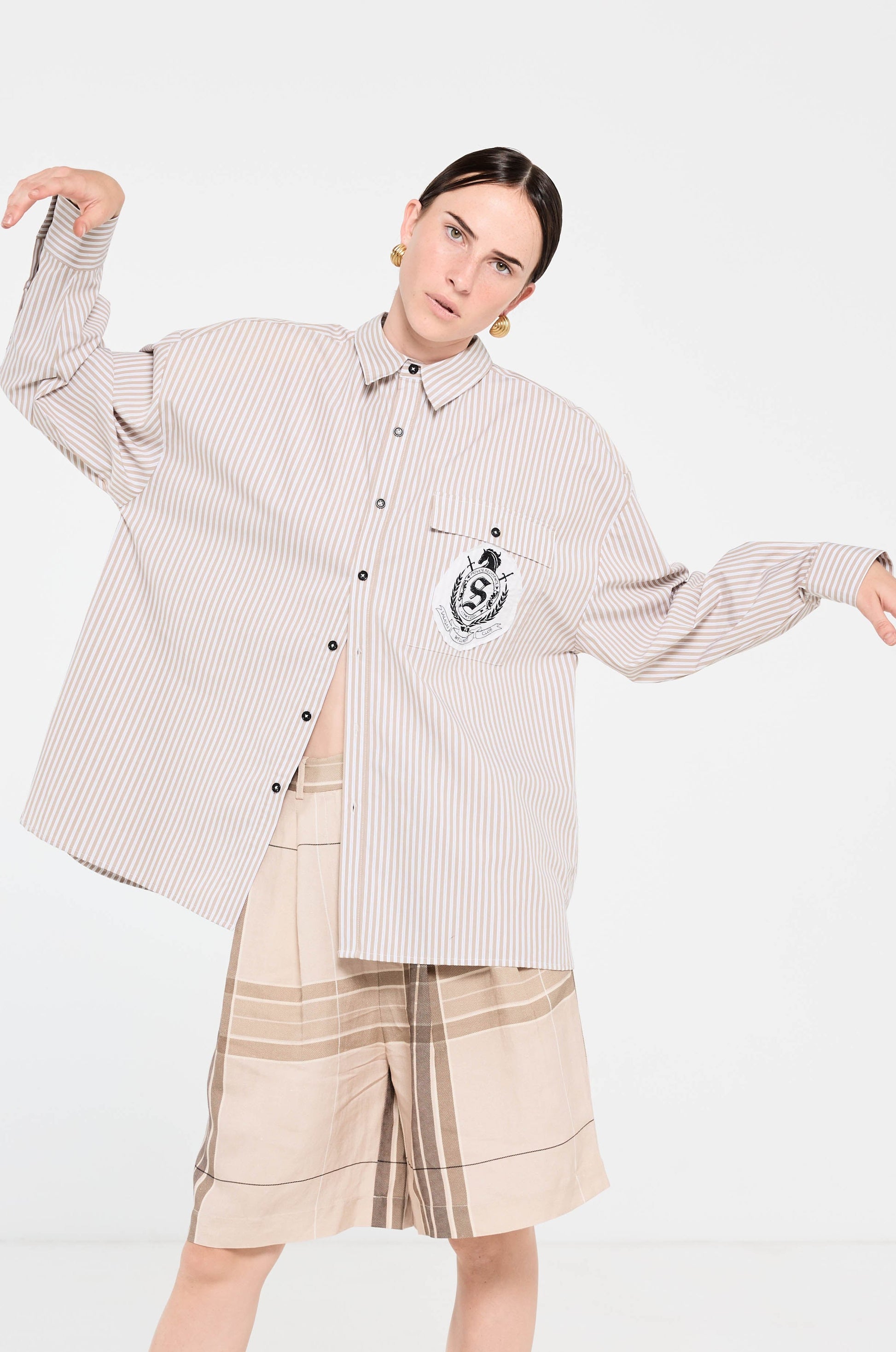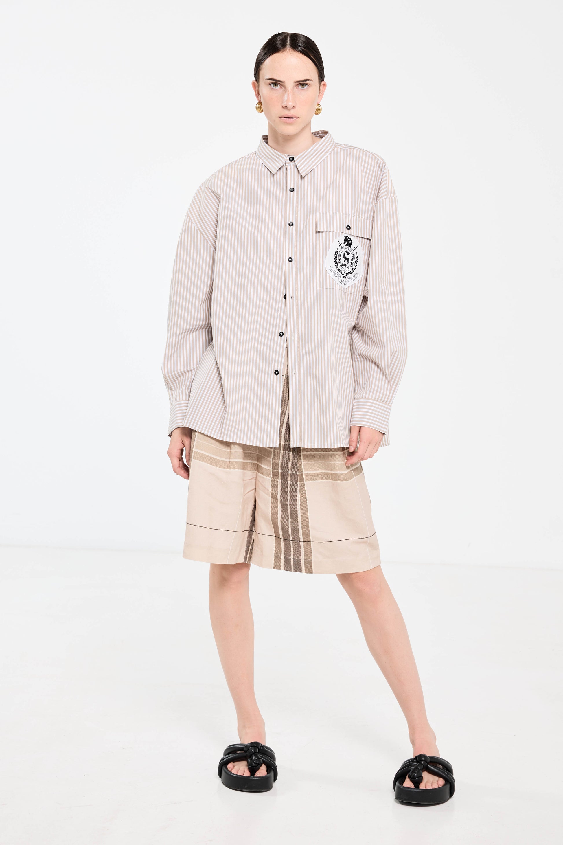 Introducing our Health Club Shirt in Beige White Cotton stripe. This is where classic design meets contemporary style.