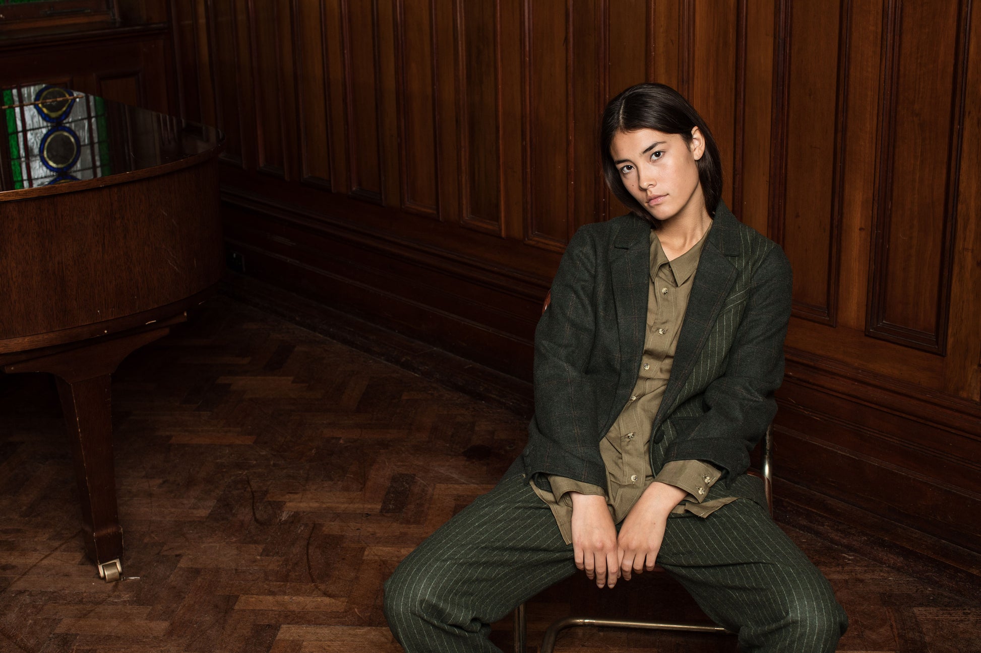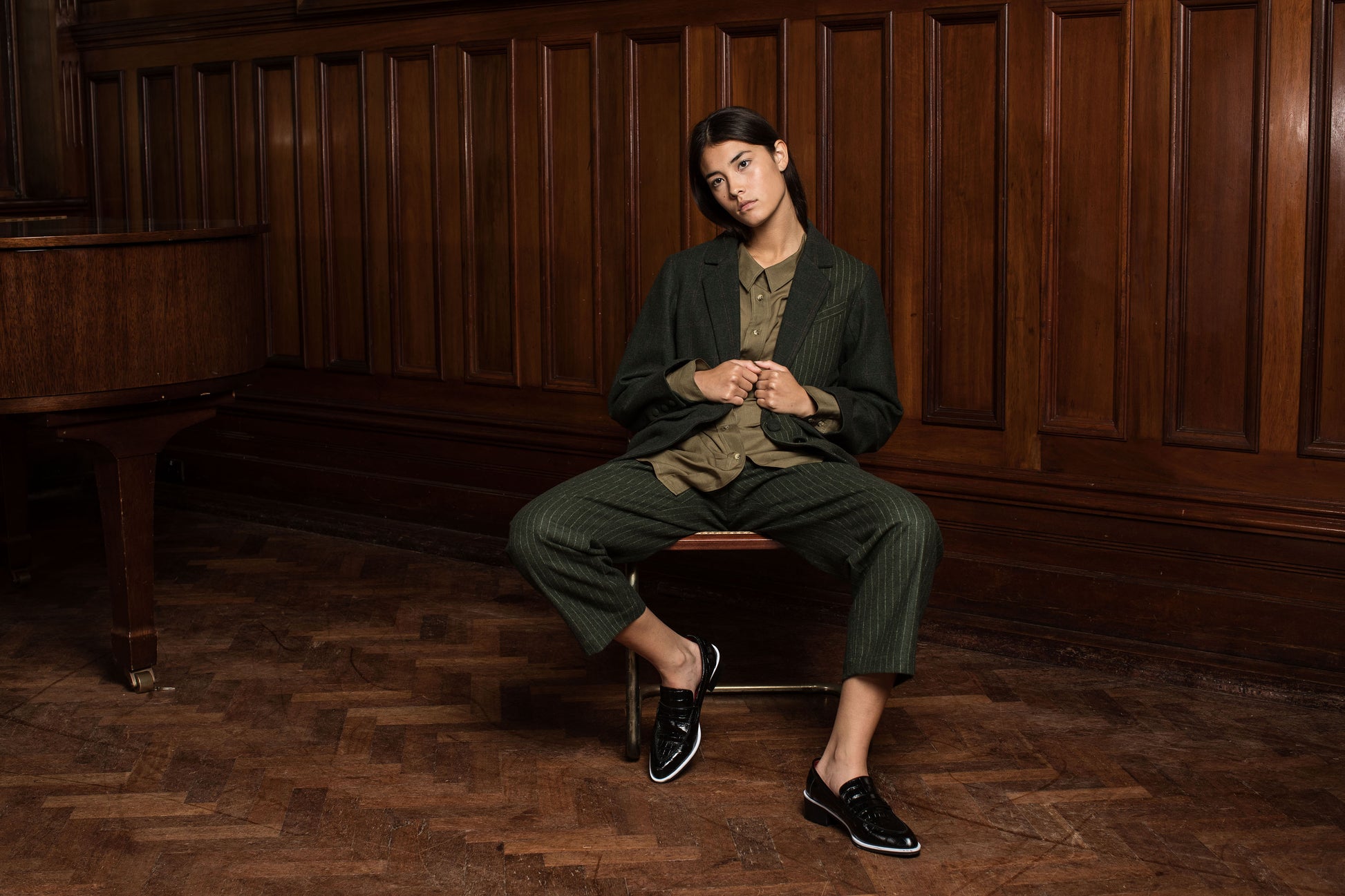To be worn ideally with the Aristocrat pant in Pinstripe and shown here paired with Vanity shirt in Khaki.
