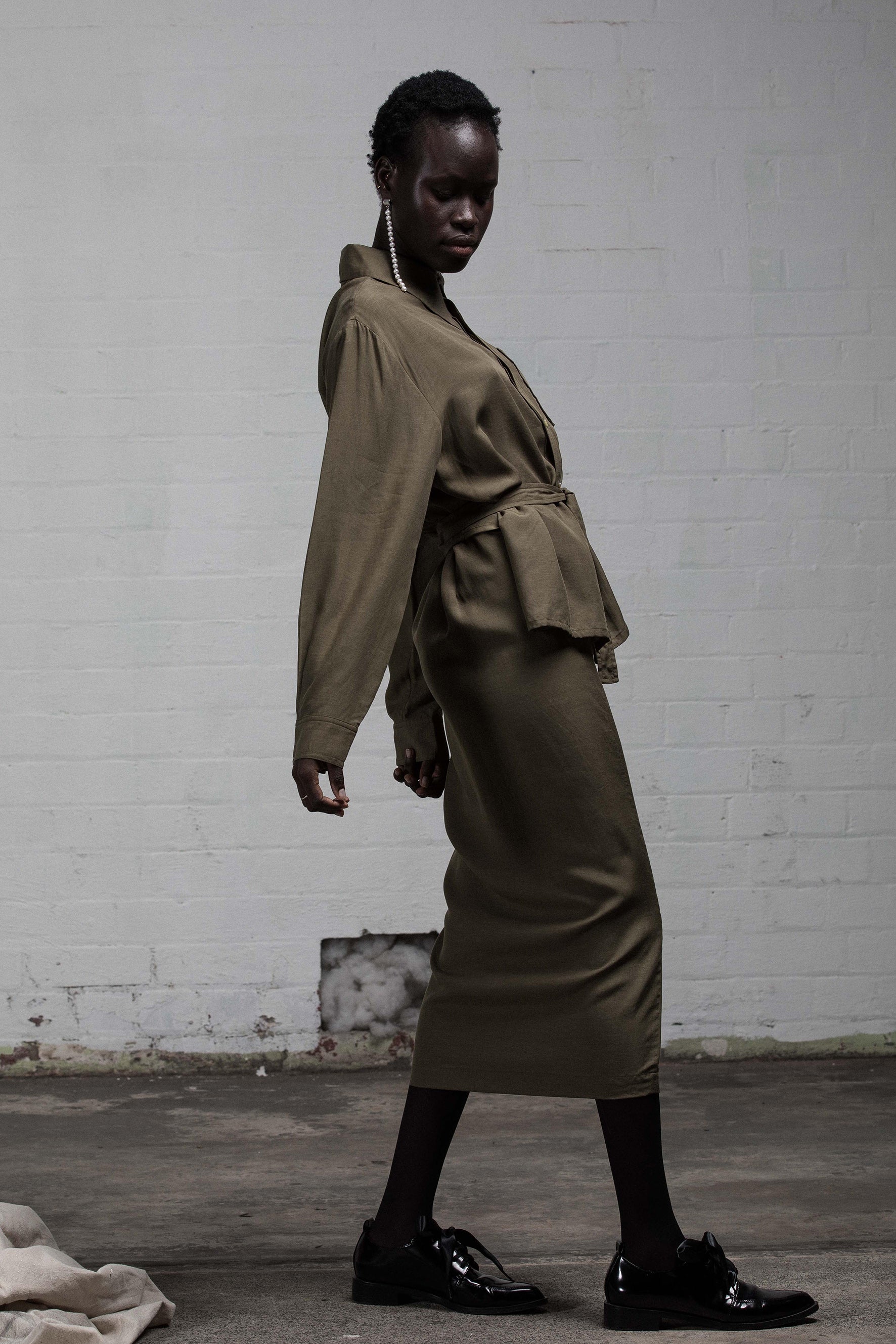 The Betrothed Wrap Dress is a reminiscent of a 60s WW2 US Army Uniform.