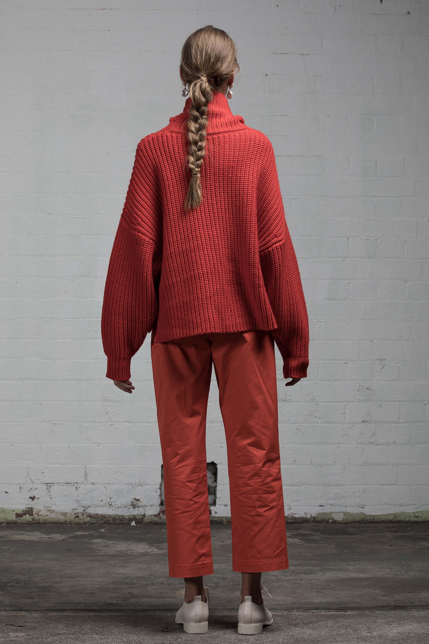 The High roll neck, oversized chunky body and drop sleeves makes this piece a fun shape to wear and layer over jeans of dresses, here we have it worn as a track suit but we like to wear it over long skirts and jeans also.