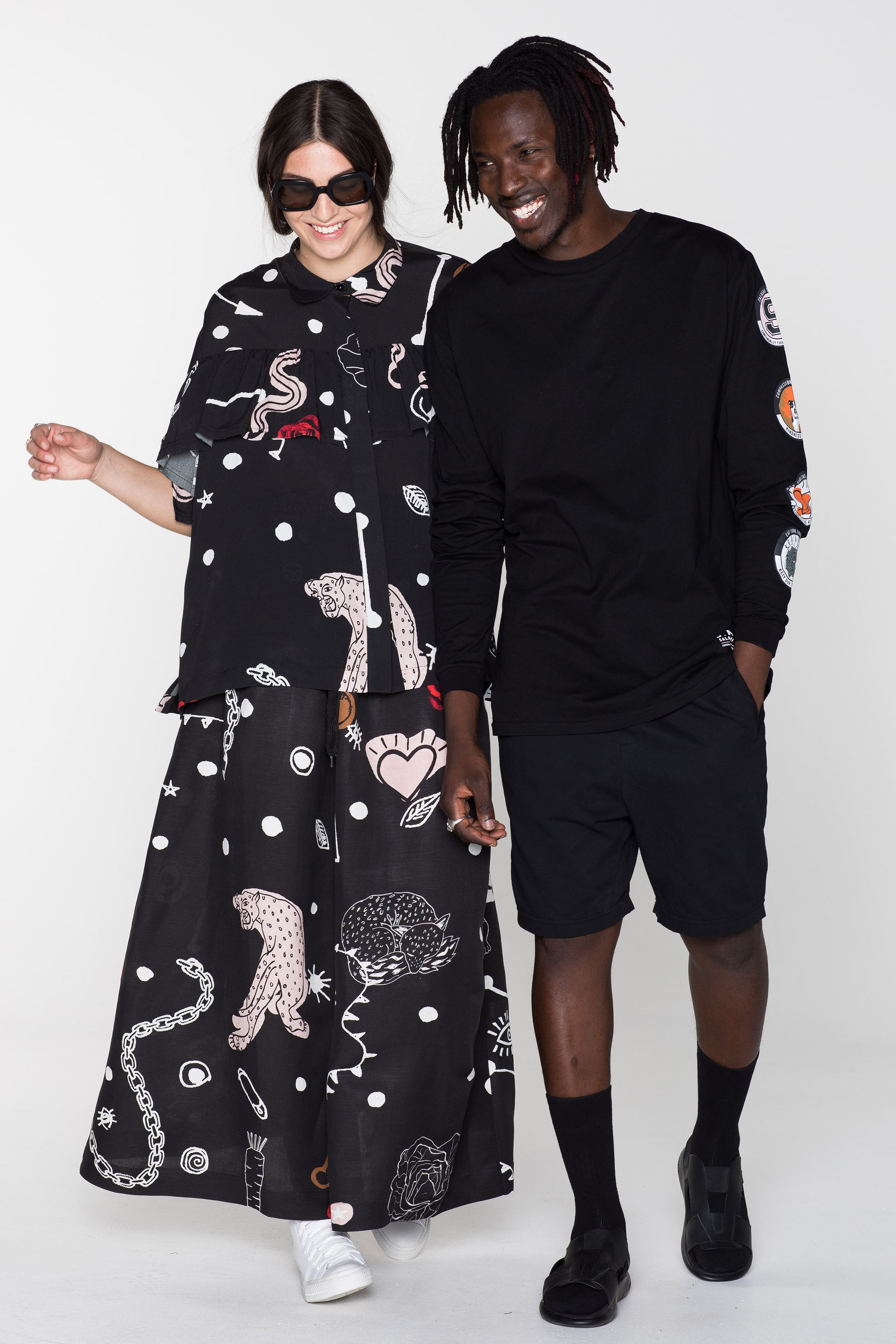The Creatures Blouse is a contemporary take on the women's shirt blouse. The relaxed silhouette paired with the signature SS19 "Chain n Hound" Print make it a beautifully unique and an essential staple for everyone, transcending both age & trend.
