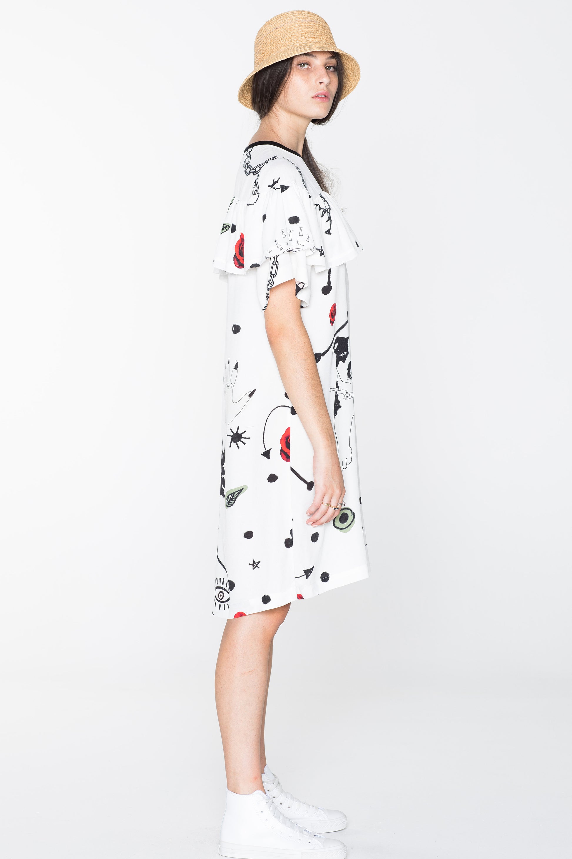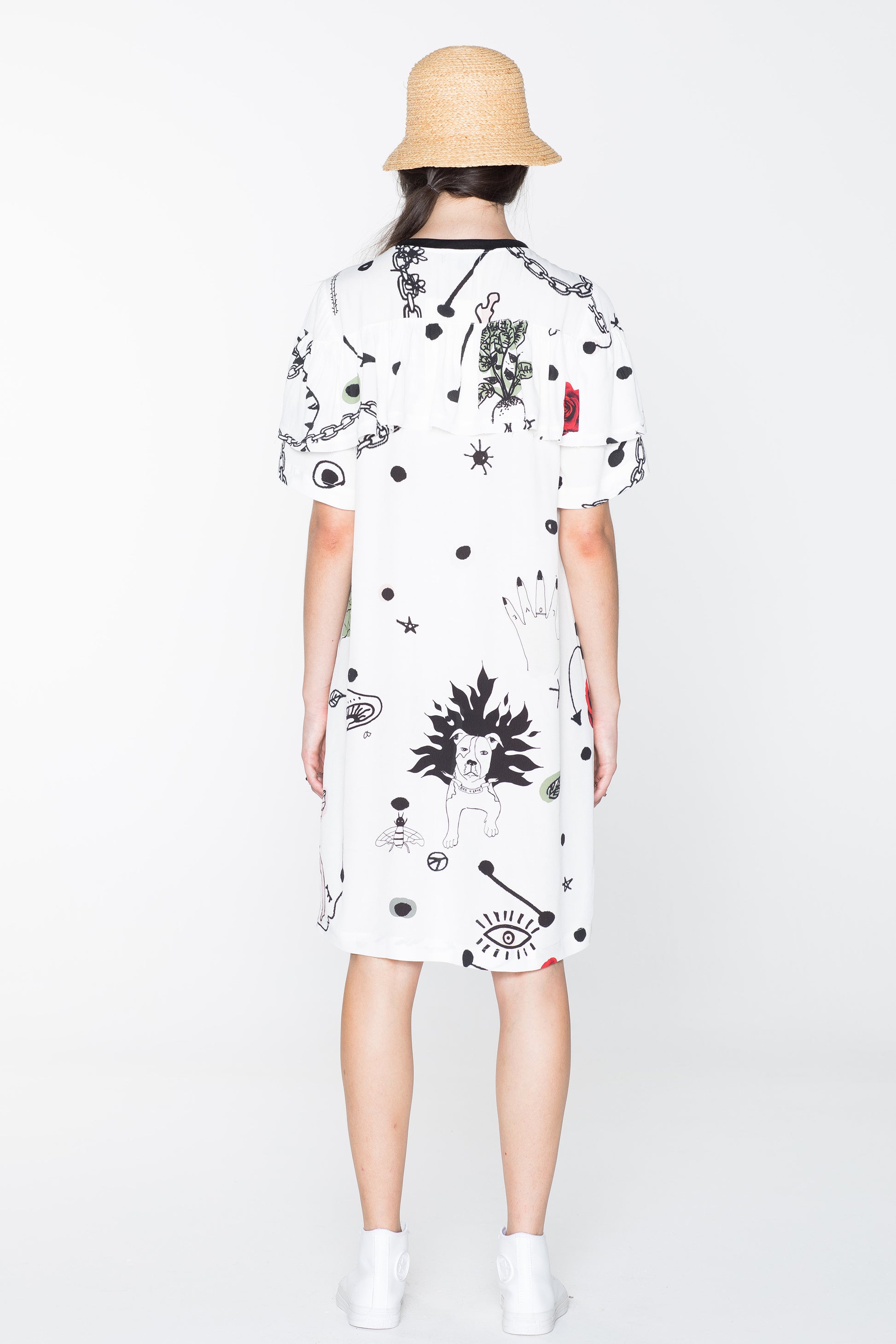 CREATURES TEE DRESS - WHITE CHAIN N HOUND PRINT