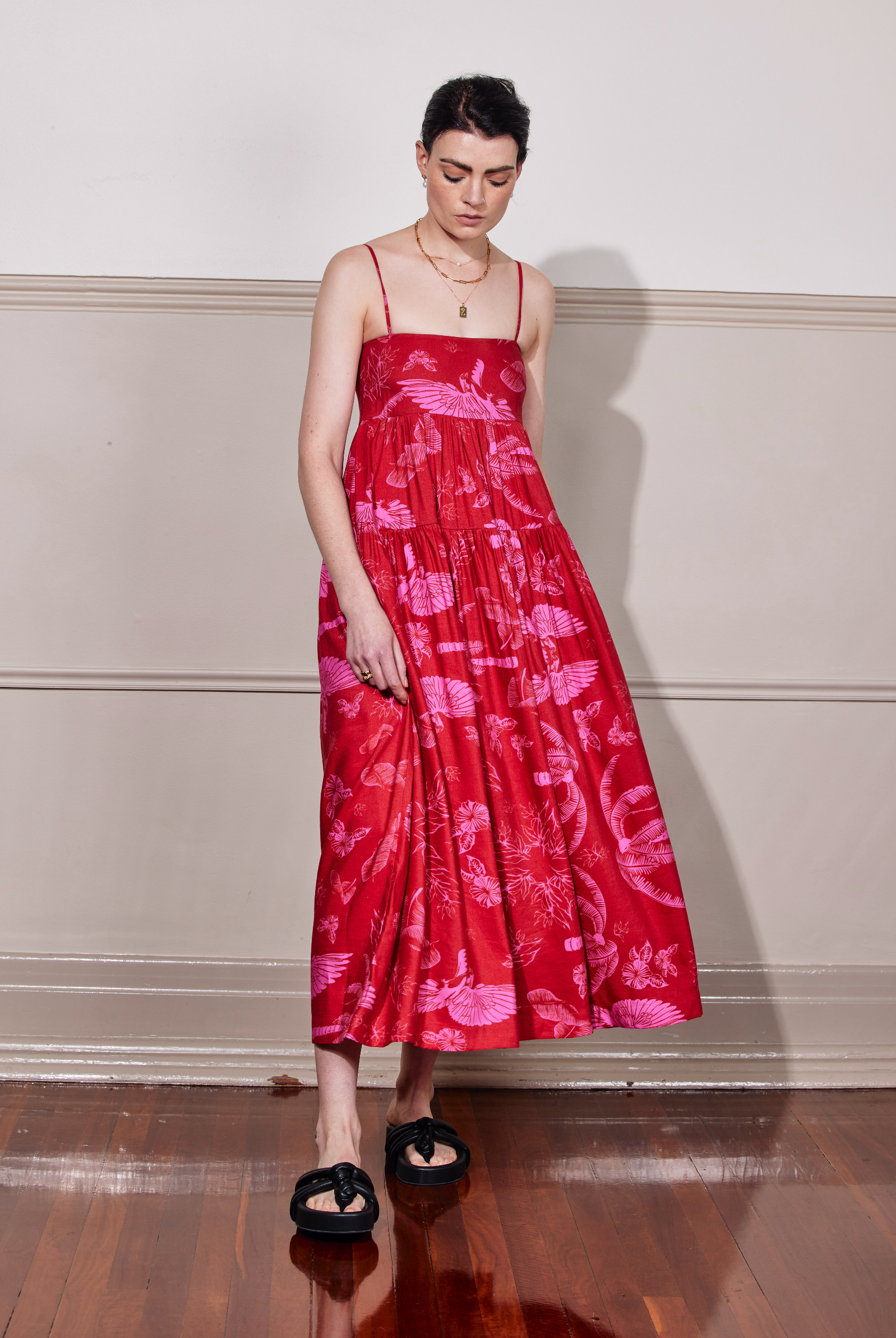 The Dangerous Hearts Dress is a fun new silhouette for Salasai featured here in the vibrant 'Pink/Red Isle Print.