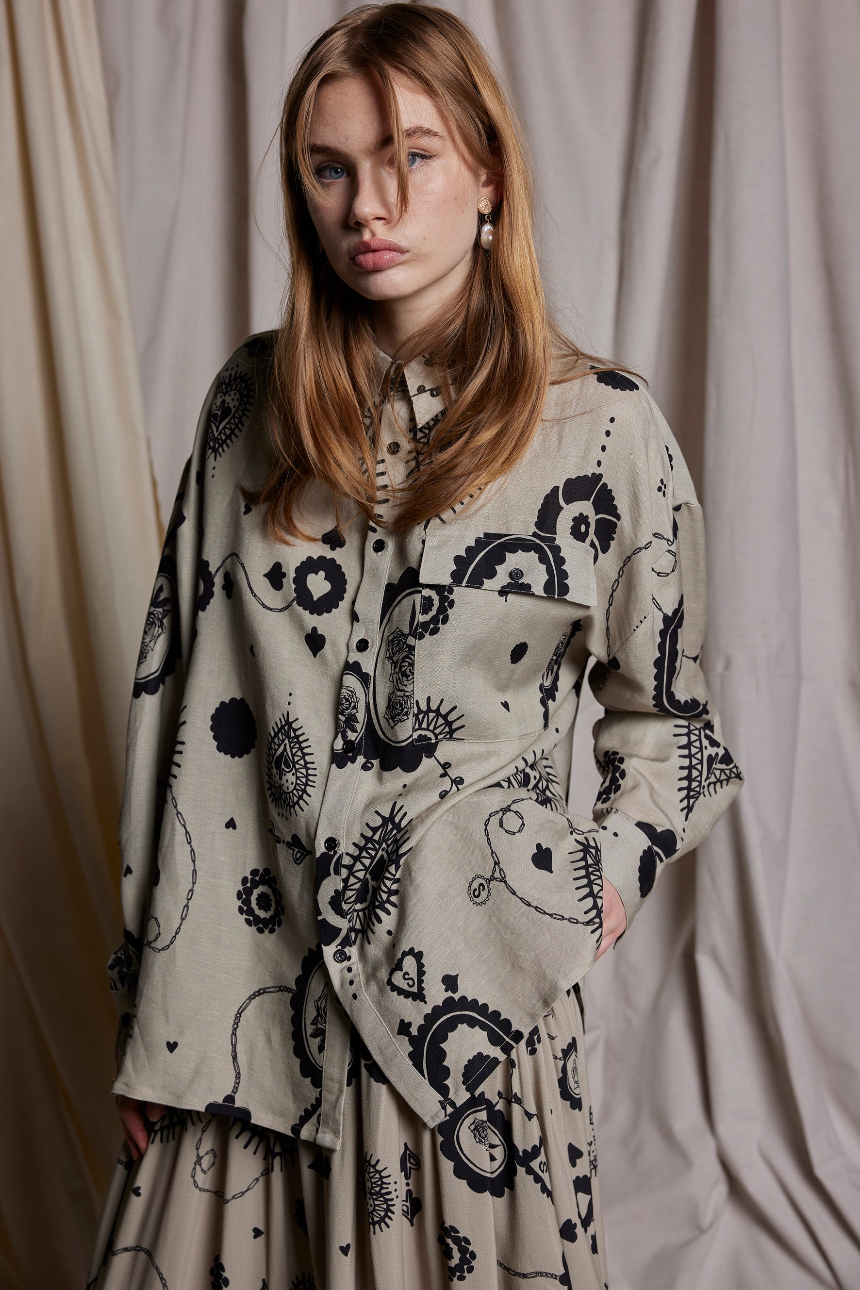 DES FLUERS SHIRT - STONE CAMEO PRINT