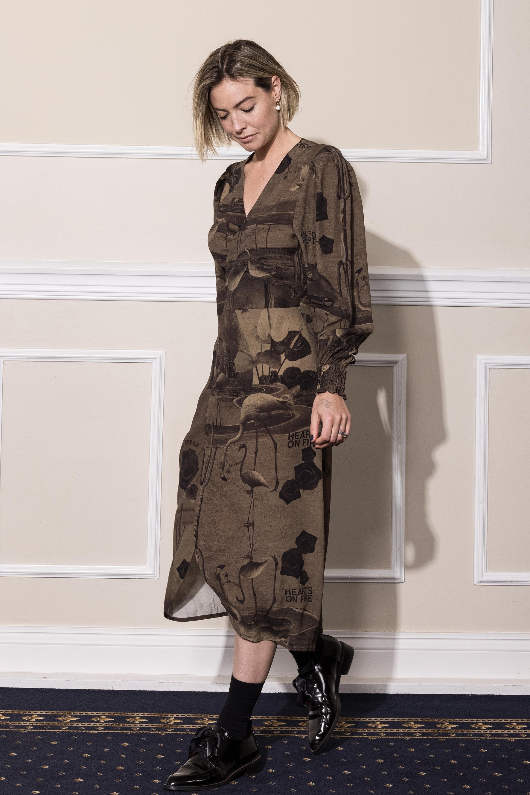 HEARTS ON FIRE WRAP DRESS - CHOCOLATE PRINT