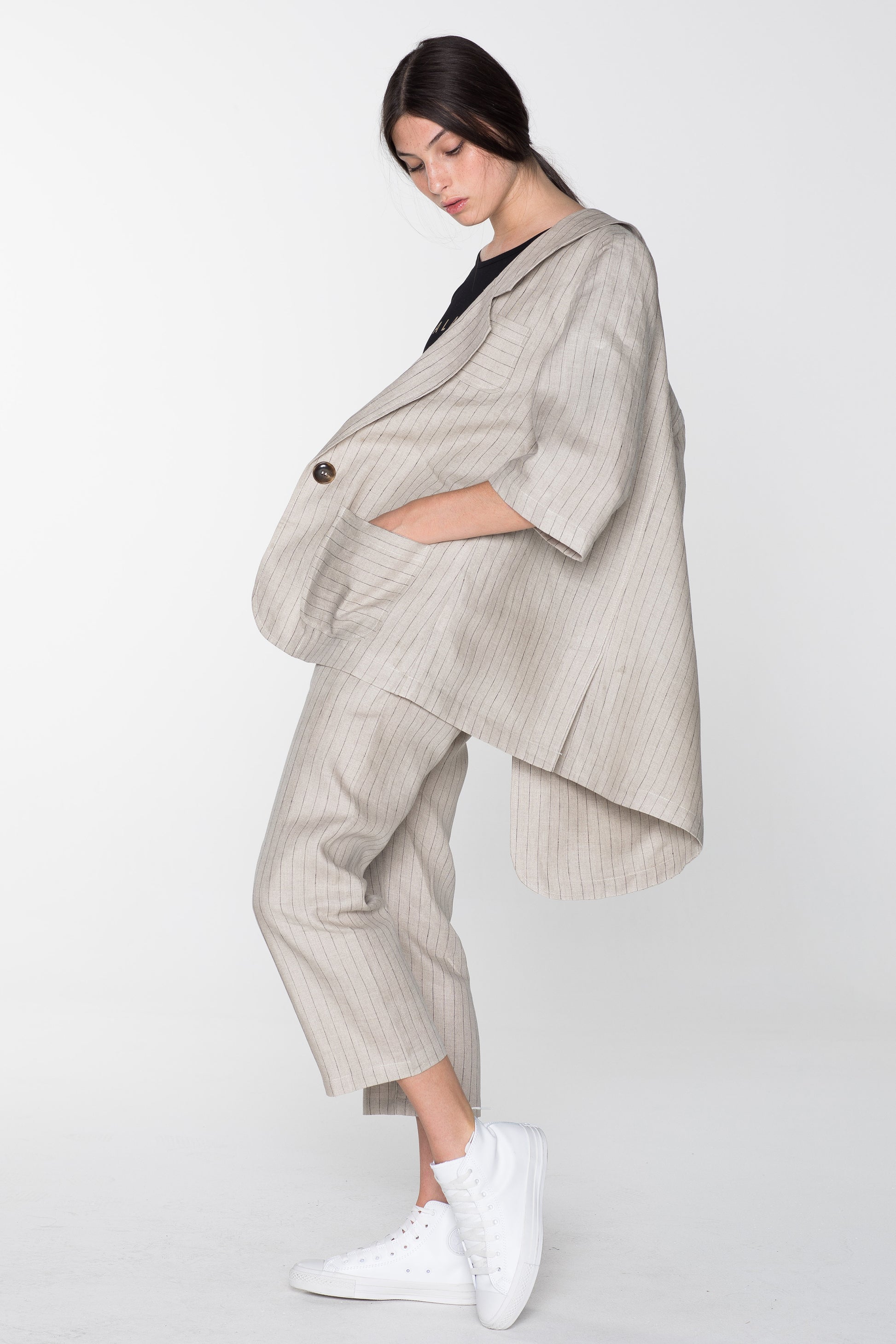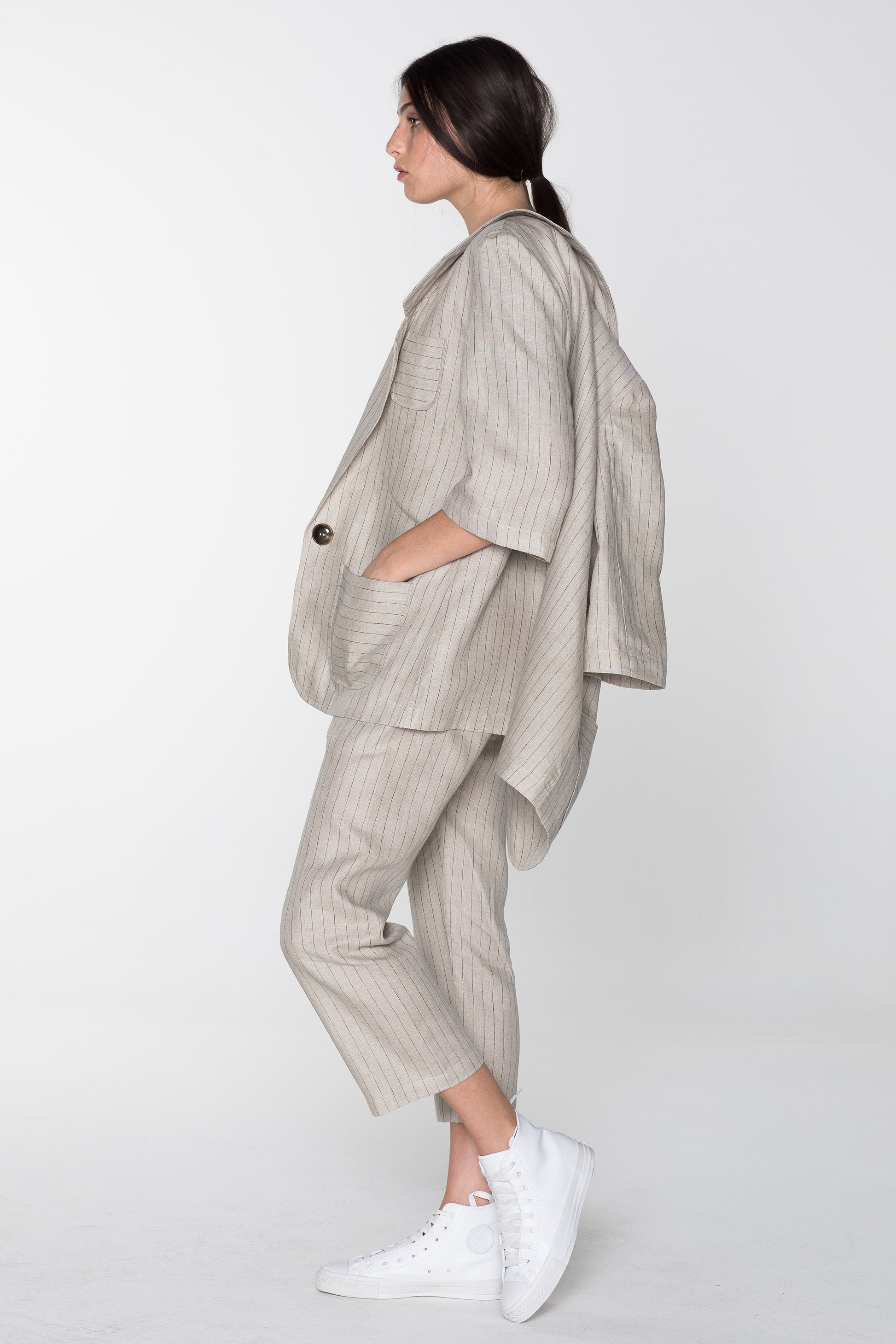 HUMANE BLAZER- NATURAL PINSTRIPE