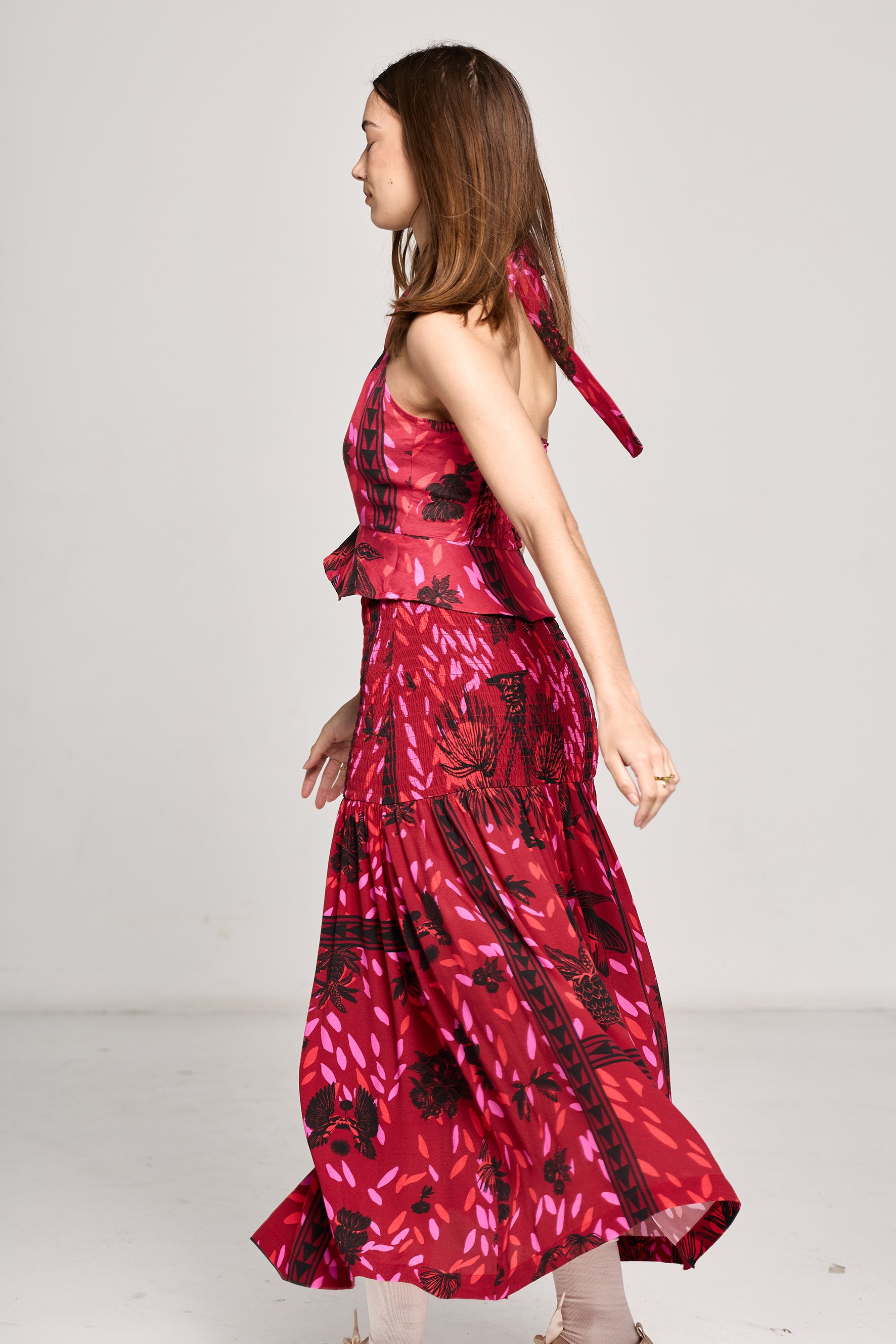 Jezebel Shirred Skirt - Wild Cherry Print