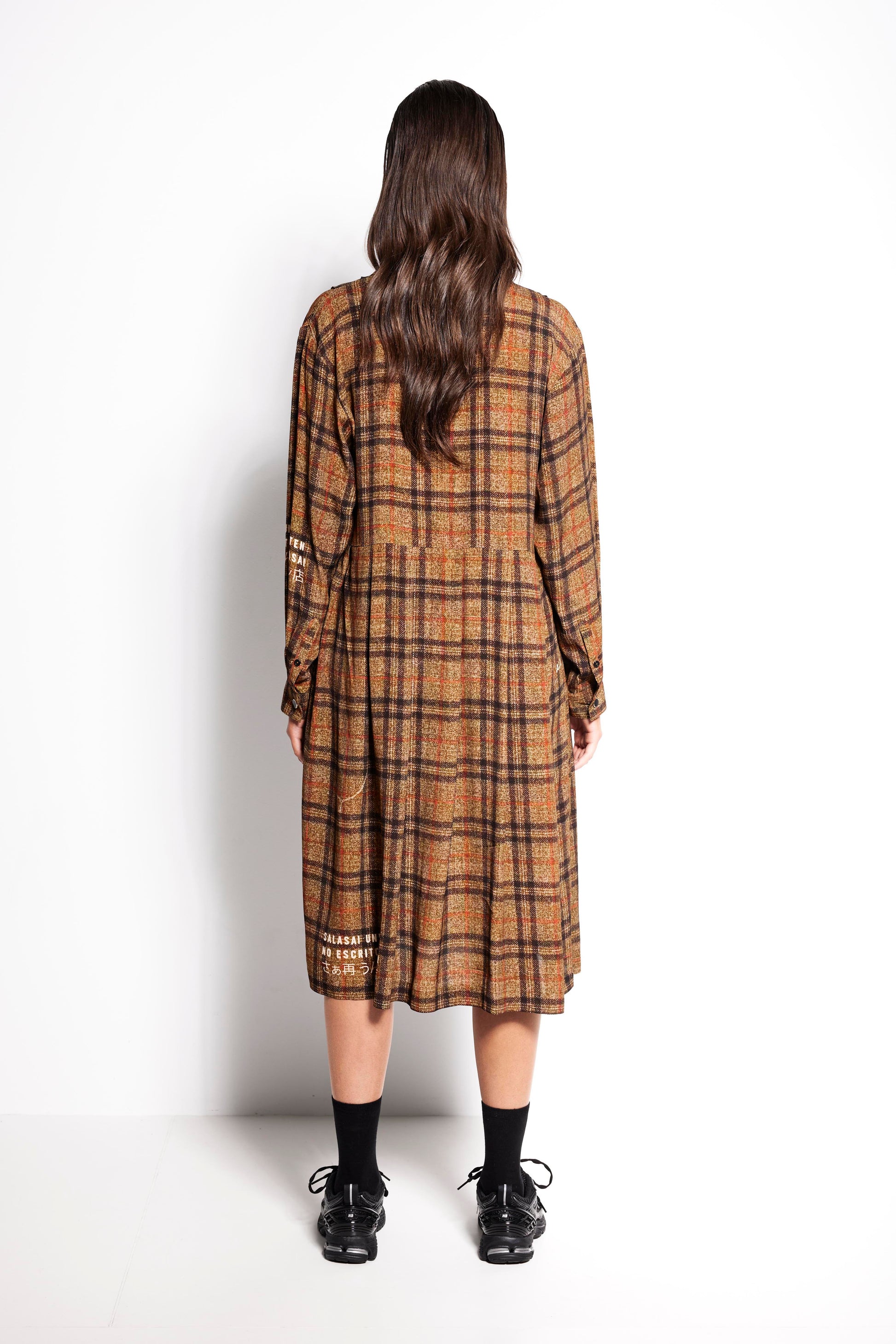 La Luna Tee Dress - Mid length long sleeve dress in brown check