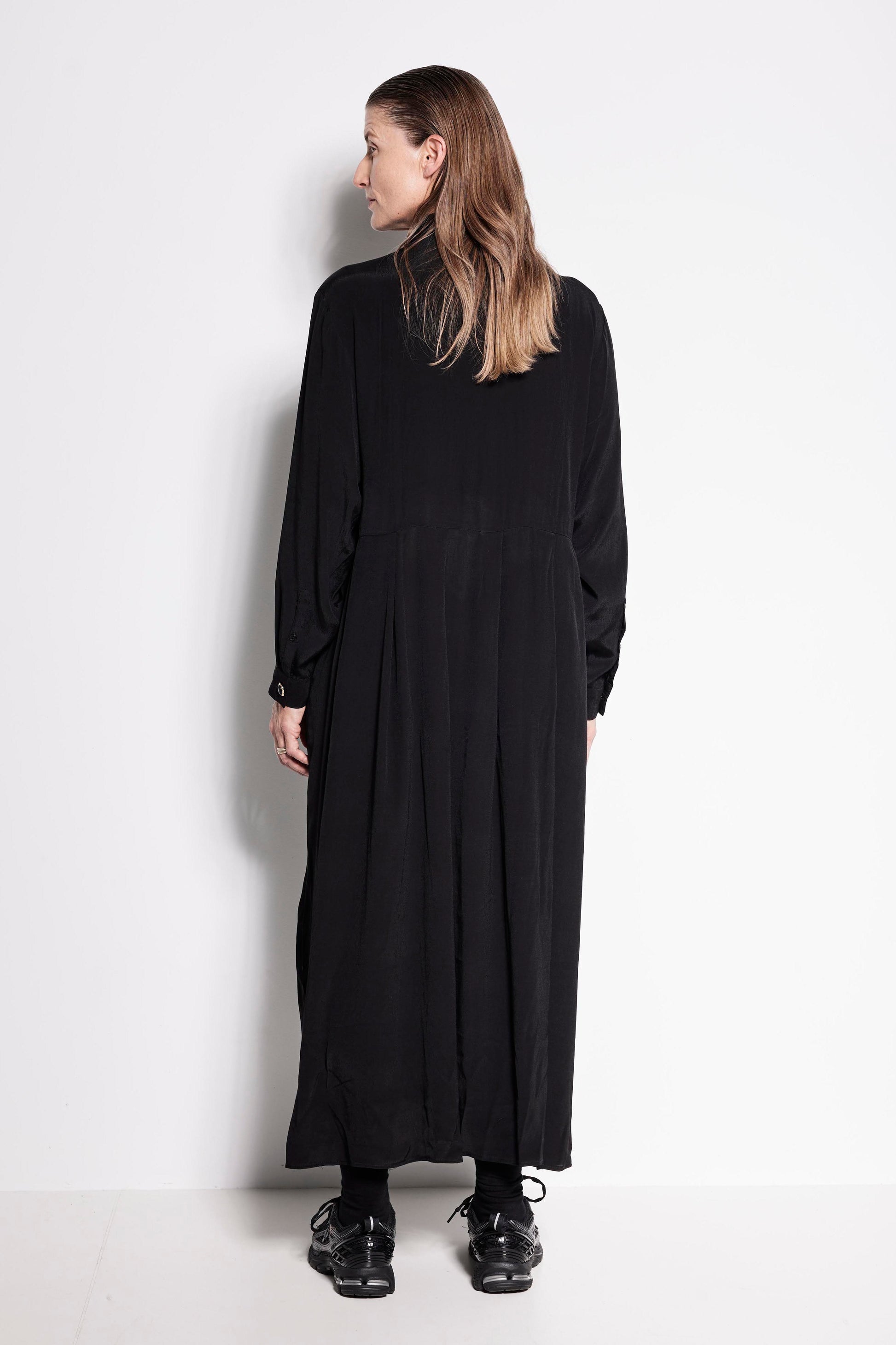 This captivating dress seamlessly blends comfort and elegance, making it a versatile essential for your wardrobe. The relaxed, oversized fit flatters all body types, while the classic black colour exudes sophistication and timeless style. The full-length silhouette adds a touch of drama and grace, making it perfect for a variety of occasions.