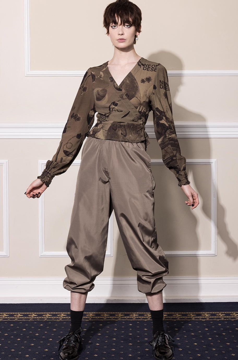 The Moonrising pant is a new silhouette for Salasai. Comfort driven style with a loose billowing leg shaped into an elasticated hem very much like a 1940s flight pant.