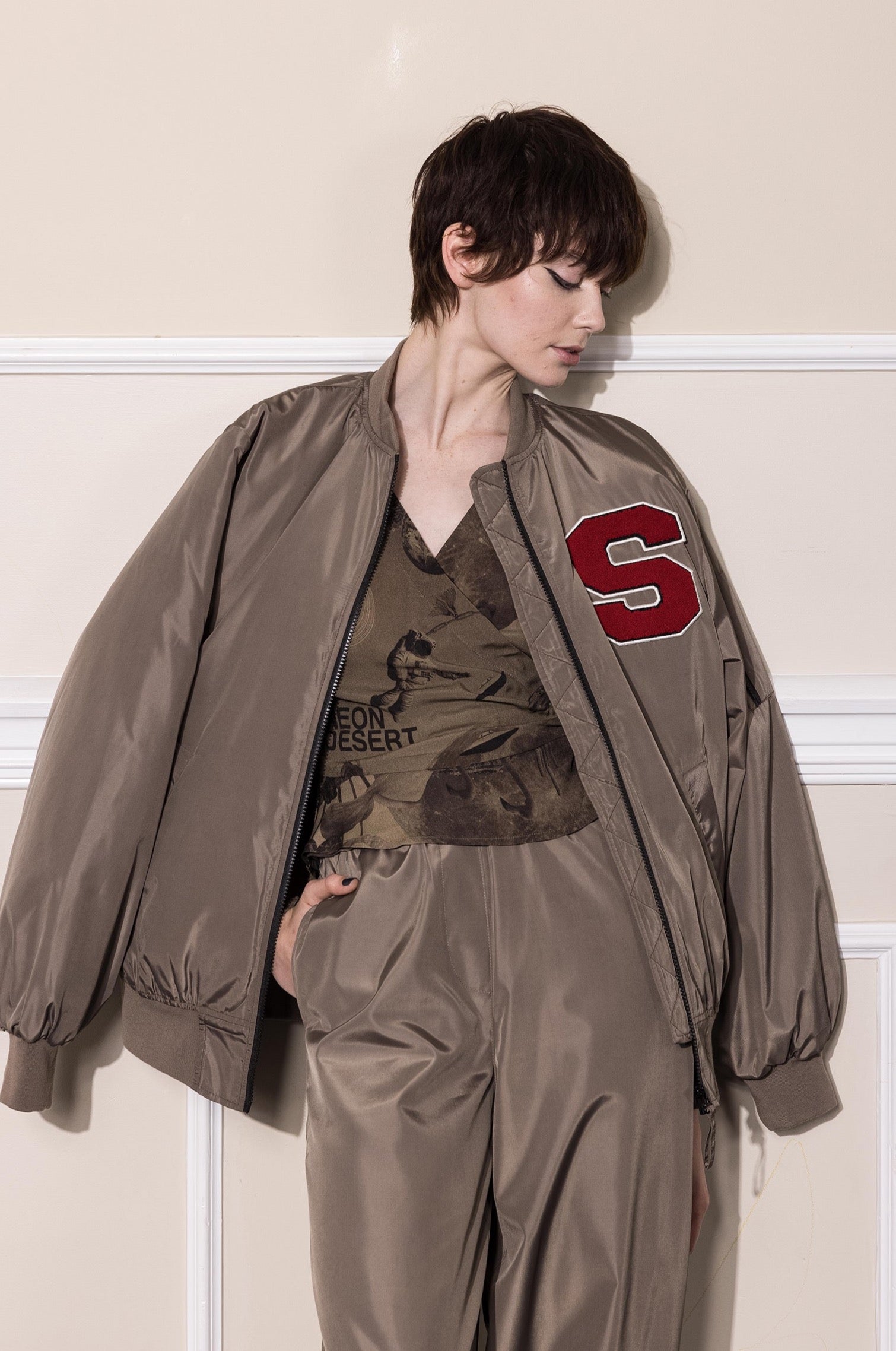 The typical unisex bomber shape Salasai is known for - relaxed and uncomplicated.
