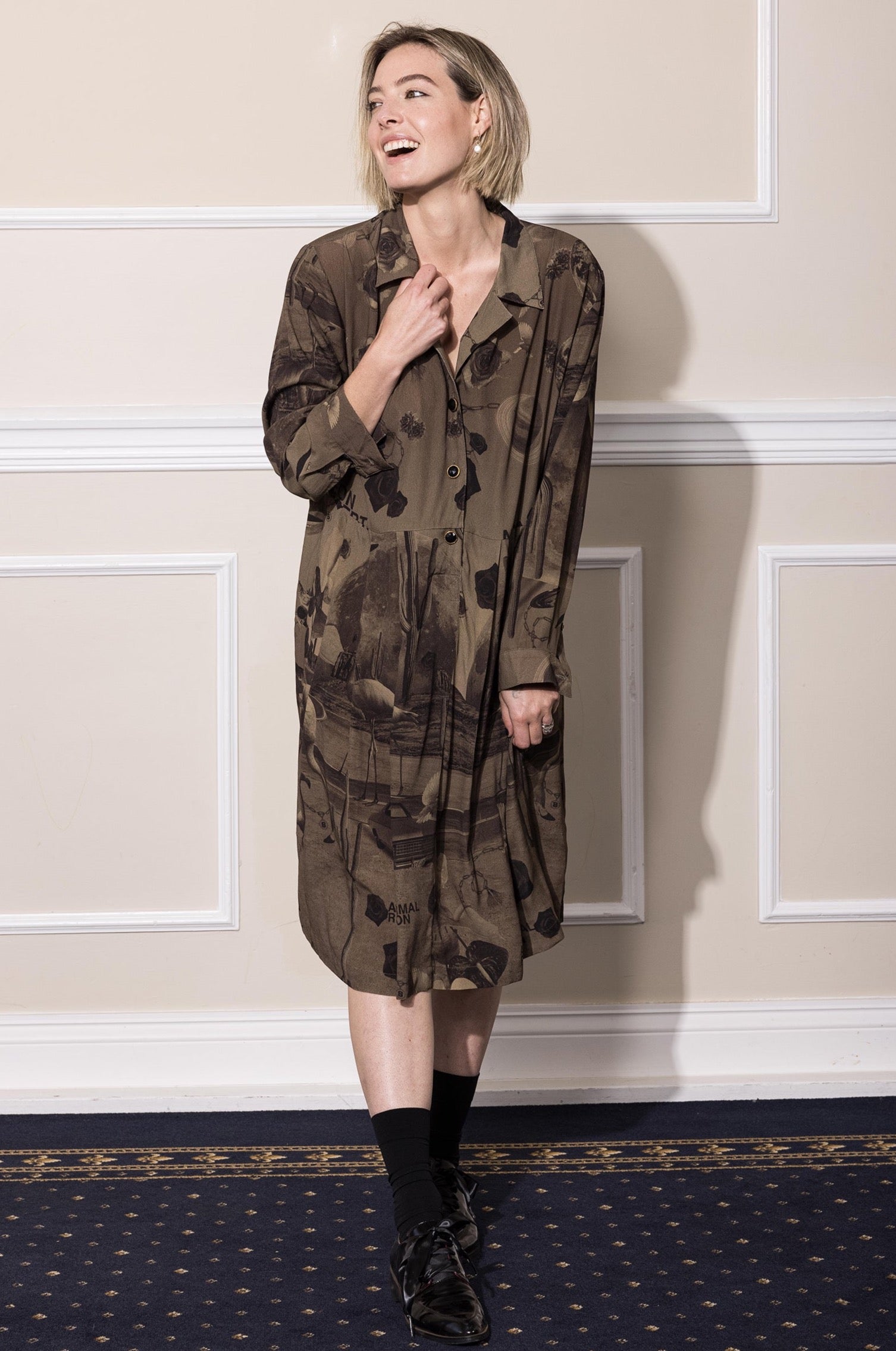 Note: The garment's print is differently placed, each piece cut individually. the model is wearing an original print and not two are the same.