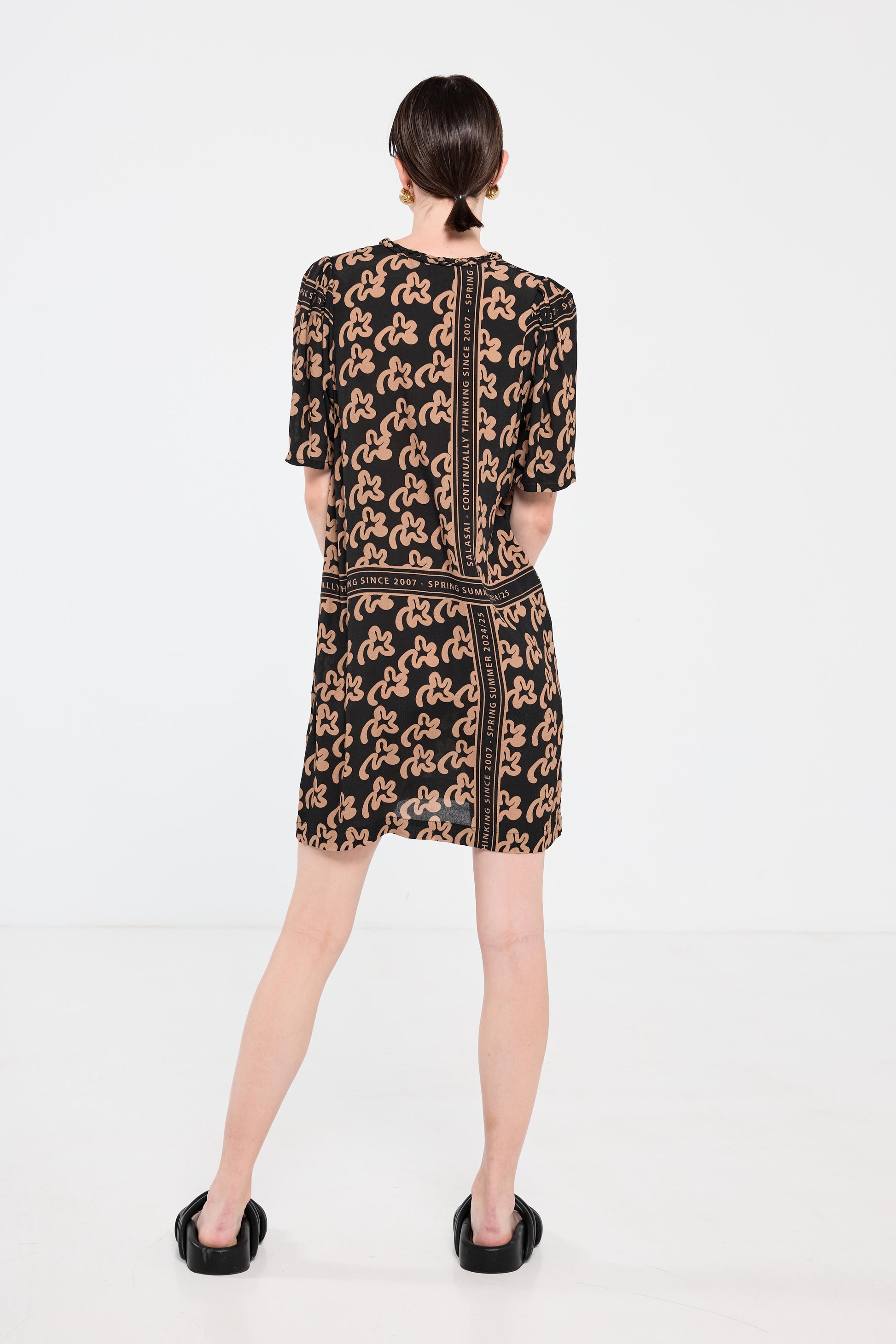 The just above-knee length showcases your legs beautifully, while the cropped sleeves offer a modern, airy feel. Perfect for both casual outings and dressed-up occasions, this T Dress is your go-to piece for versatile, chic fashion. Offered in our new SS24/25 prints Green Pop Palm & Beige Pop Palm.