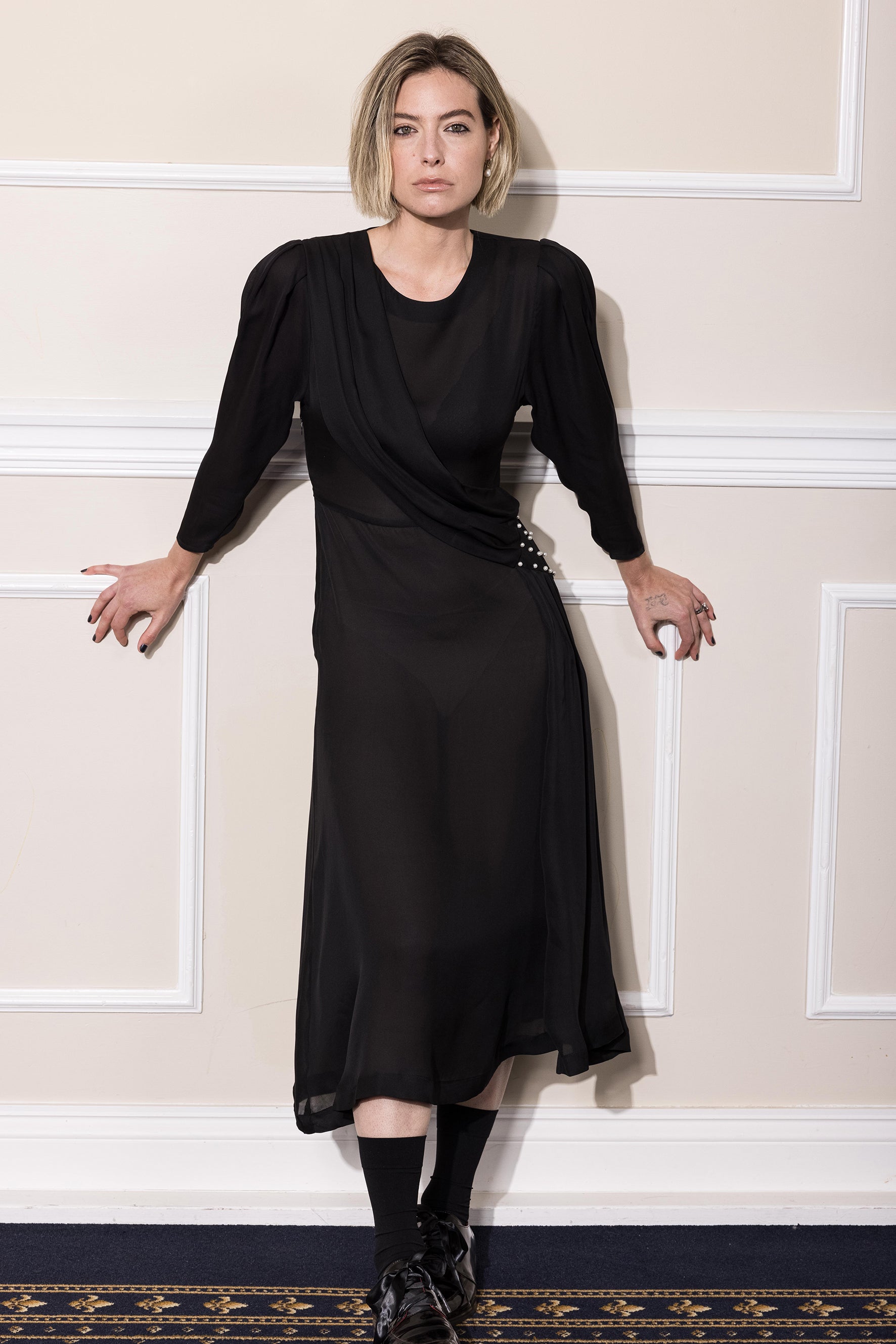 The shape is taken from Kirsha Whitcher's grandmothers dress from 1947, she reimagined the dress and gave the style a new feel and shape, cinching in the waist and lengthening the skirt, sleeves have shoulder pleats and pearl details on the hip.