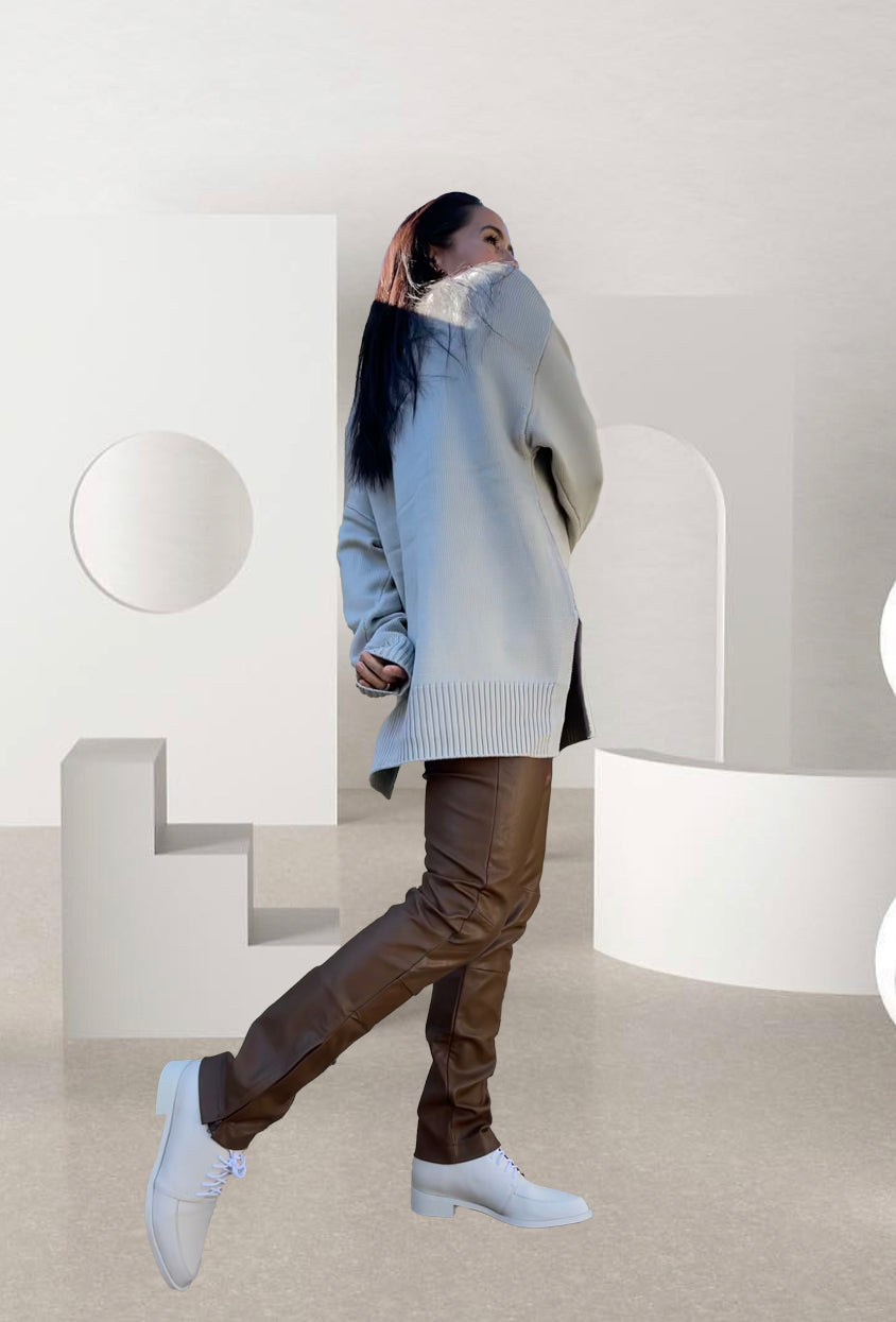 This Unisex 100% Merino collegiate styled jumper is boxy and unassuming.