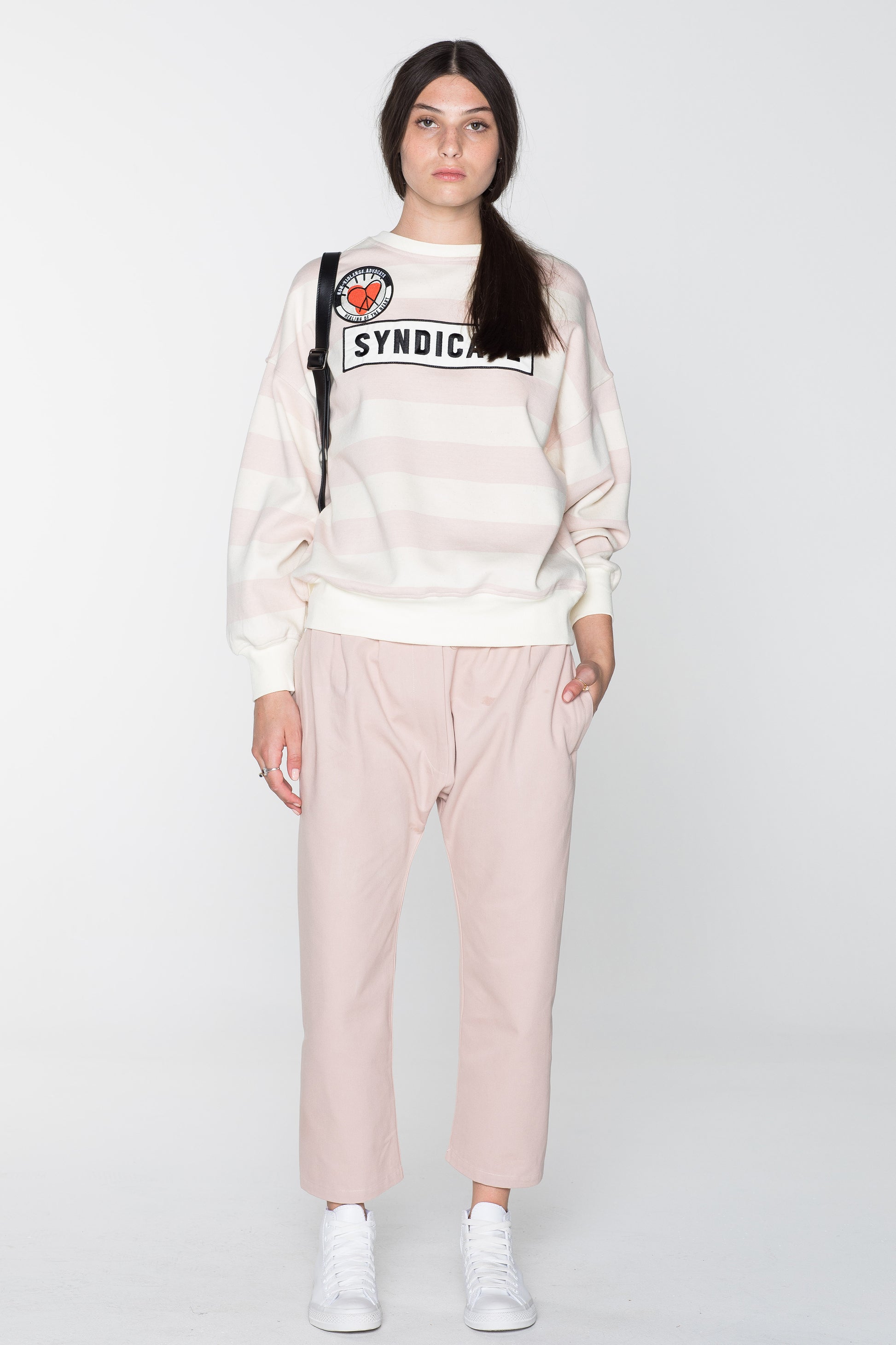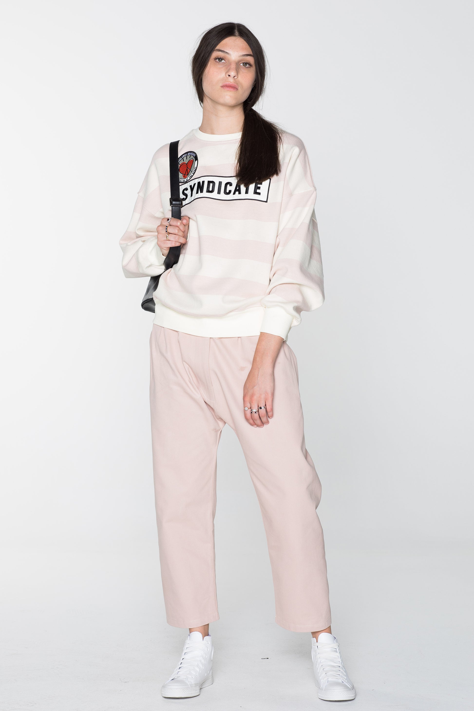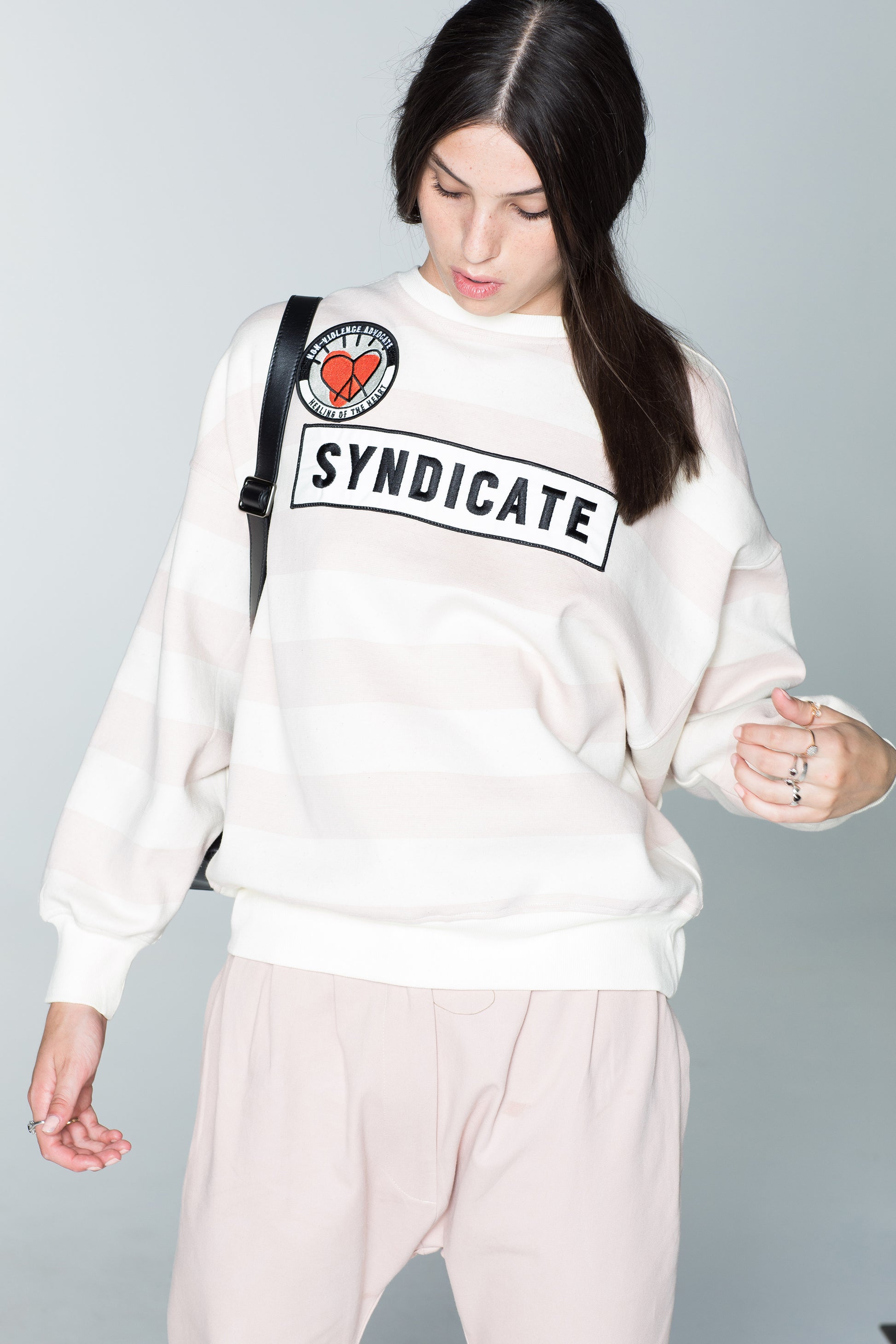 The Syndicate Sweat is the perfect trans-seasonal wardrobe staple. The drop sleeve 'batwing' style paired with the soft cotton terry make this pullover a comfort neccessity with an inspired 90's look. The sweat also features the SS19 'SYNDICATE & Advocate' embroidered patches, a contrasting neck and sleeve rib and a loose relaxed shape.