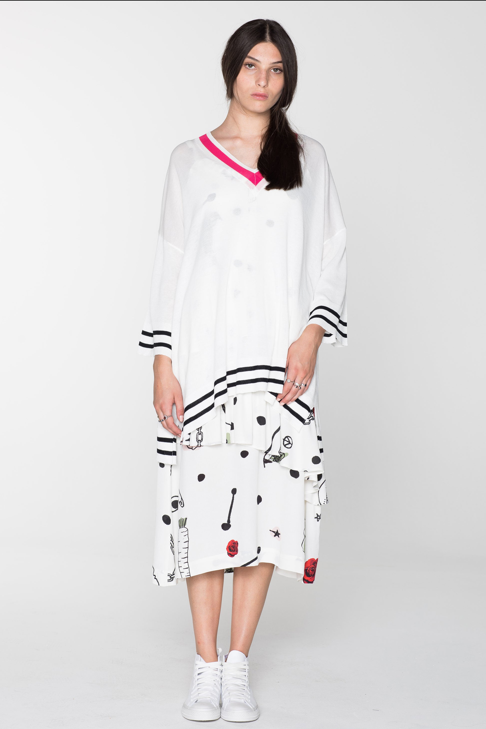 The V knit dress is a great addition in any summer wardrobe. Lightweight and full of volume this knit drapes beautifully around the body. Perfect on its own, at the beach over swimwear or as a warmer layer on summer nights.